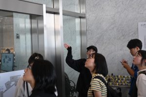 講評会後には学生から、今回の課題に取り組む中で感じた疑問や、建築を学んでいく上で生じた悩み・疑問が挙がりました。「動く素材に注目して設計を行うようになった経緯は?」という質問に対しては、ホワイトボードを用いて最初のプロジェクト「running green project」の背景について解説していただき、人間のためだけの建築ではなく他の生物と共存していくための建築をつくることが重要であるという当時のプロジェクトから得られた気付き、そしてその考え方は建築家だけでなく地球上に棲む誰もが持つべき考え方であり、このプロジェクトをきっかけに建築を介して動く素材、地球と繋がる建築を手掛けるようになったという経緯を教えていただきました。
